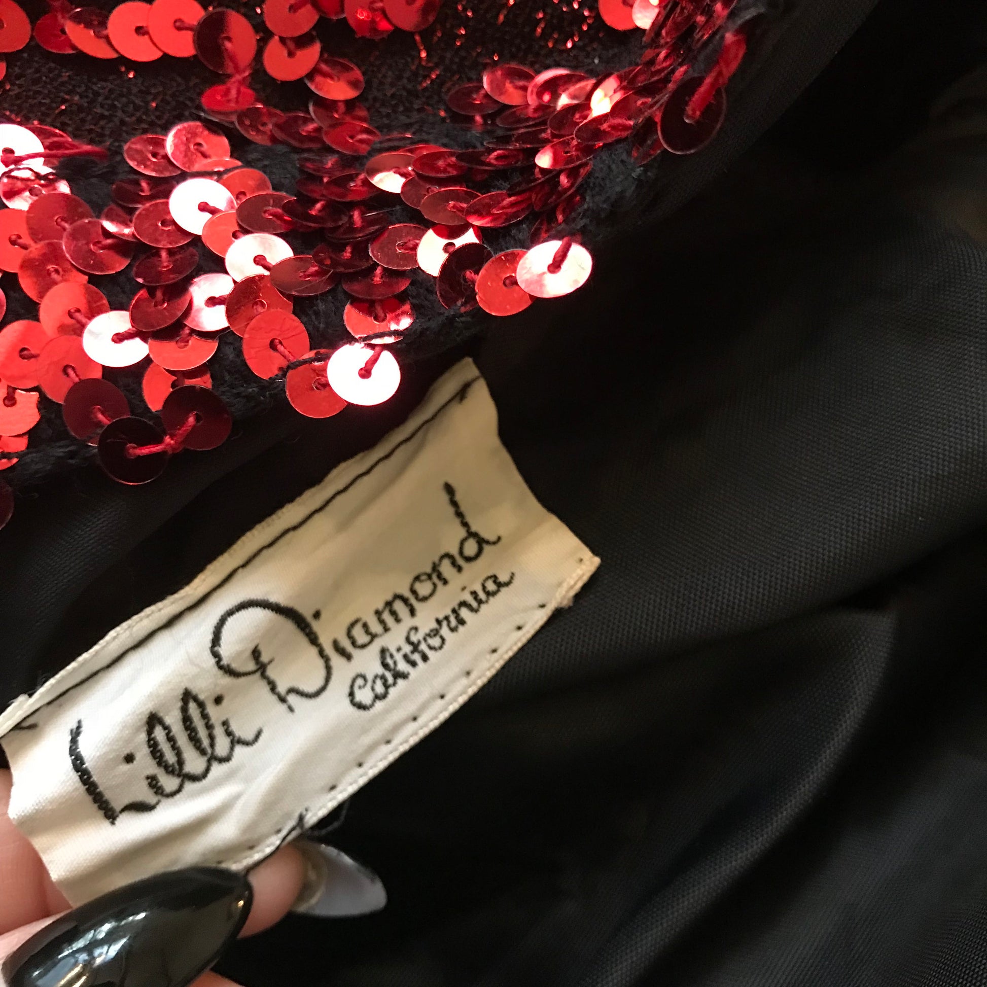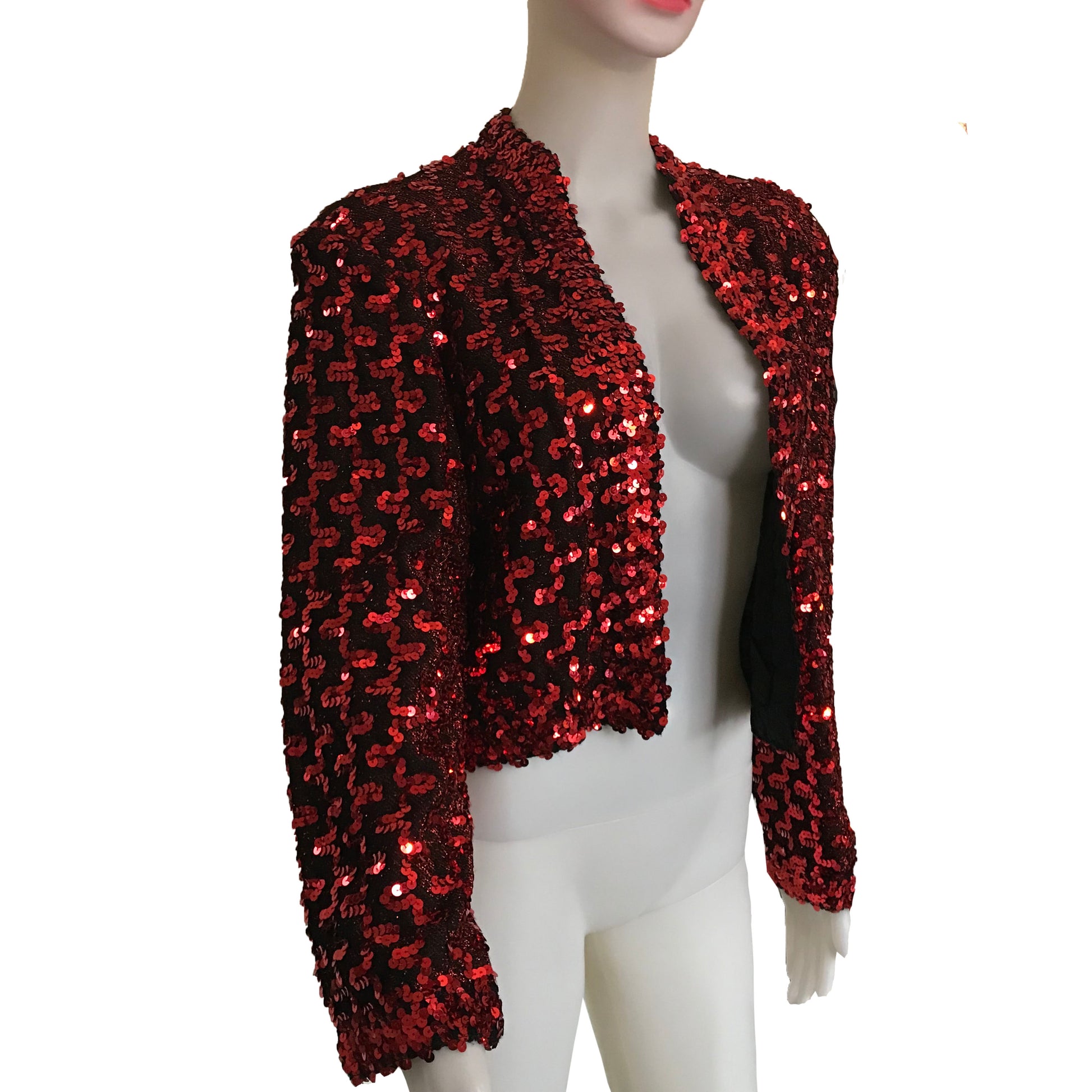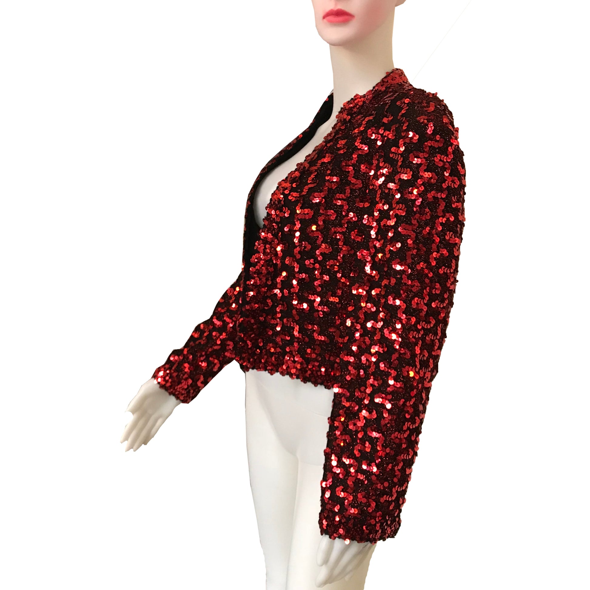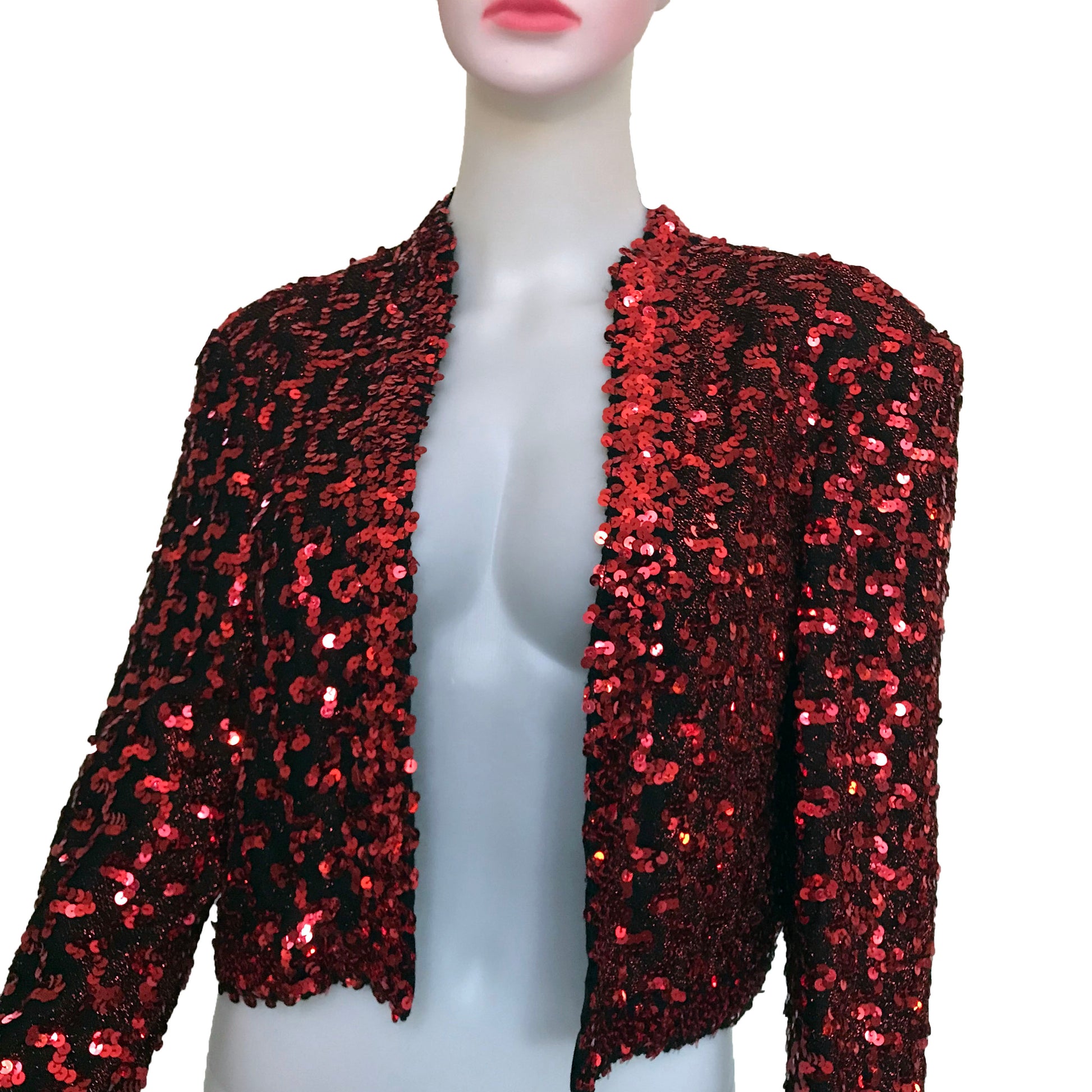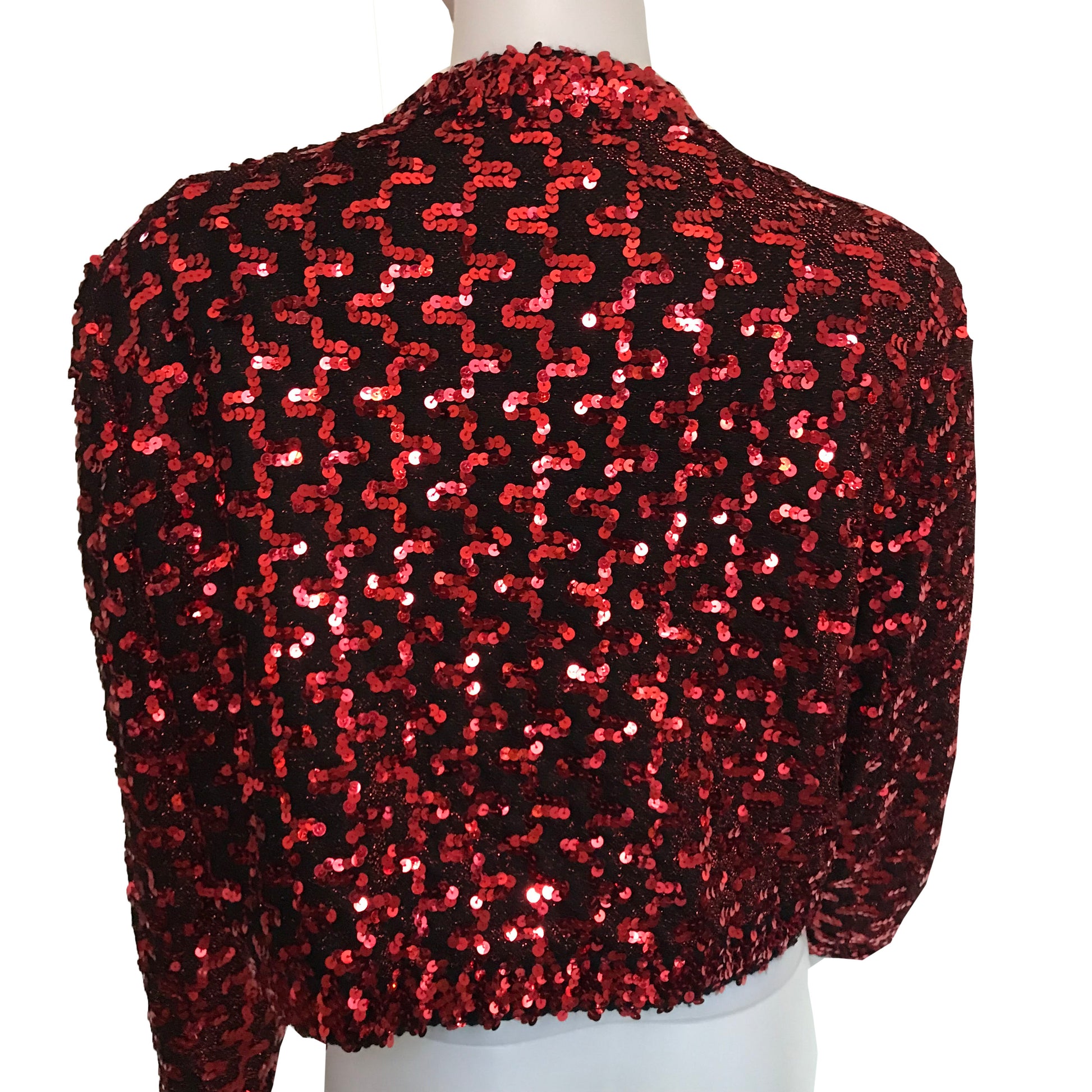 Rare vintage 1980s Lilli Diamond red sequined crop jacket. Size Large. Long sleeves. Fully lined. Light shoulder padding.
