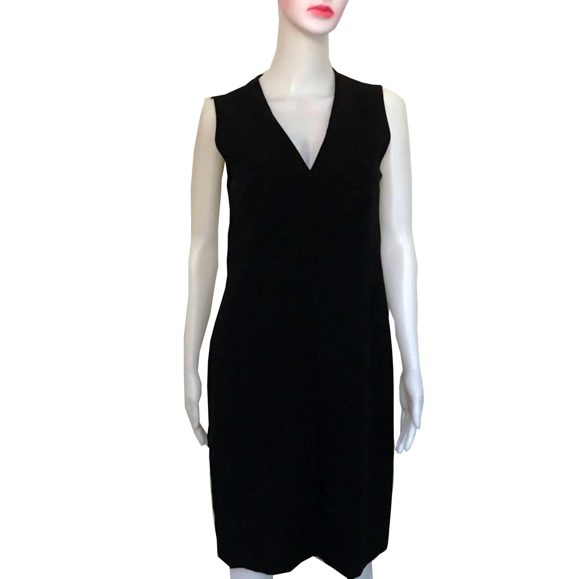 Sleeveless sheath style with back zipper. Fully lined. Wool material.