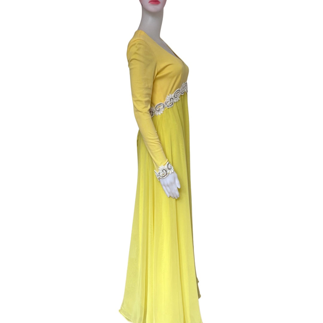 Stunning yellow 1960s vintage chiffon gown from the Lillie Rubin exclusive 700 collection. Size S.