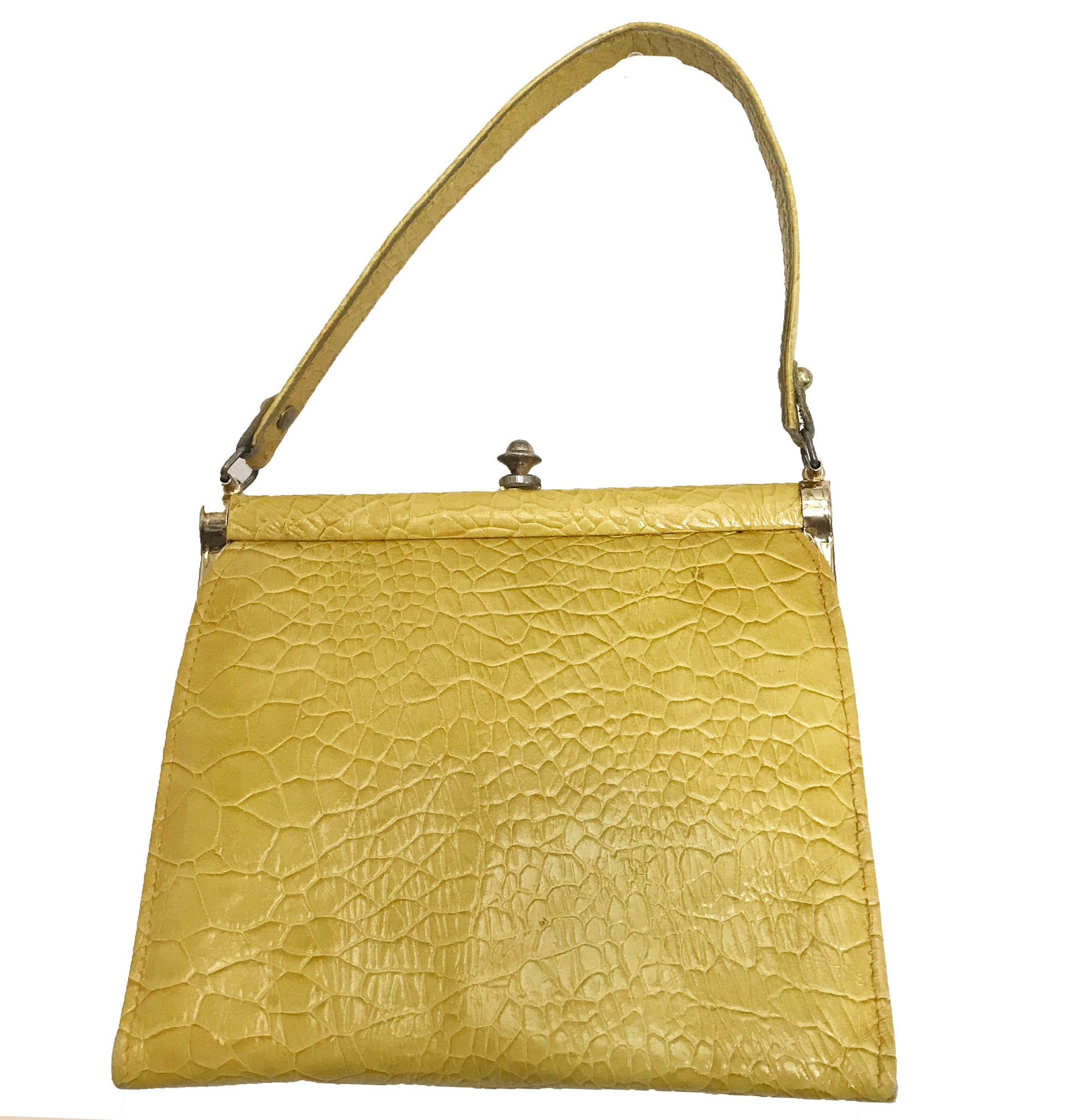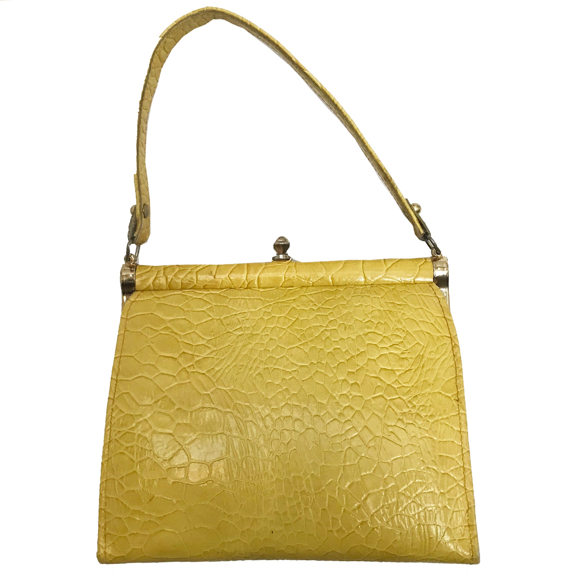Vintage 1950s Yellow Top-Handle Crocodile Bag
