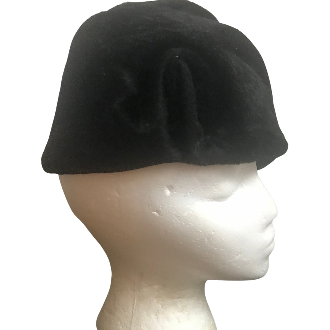 Vintage 1960s Michael Terres black felt hat. 10" diameter - 3.25" height - 21" circumference.