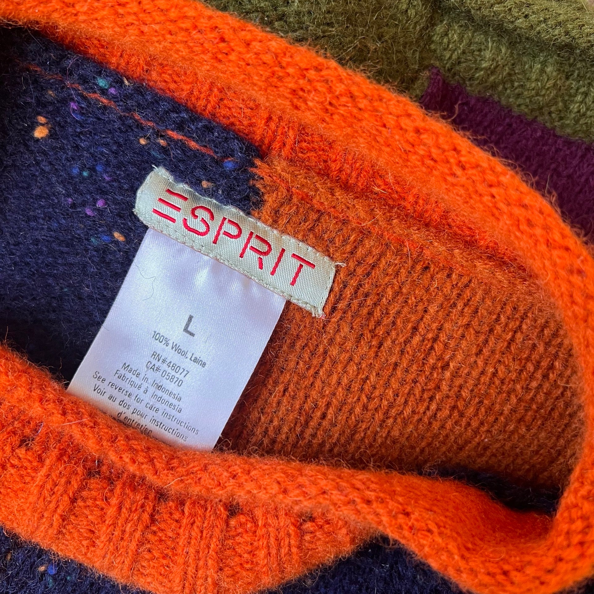 Vintage 1980s Esprit oversized color block sweater. Could also be worn as a sweater dress. Size Large.